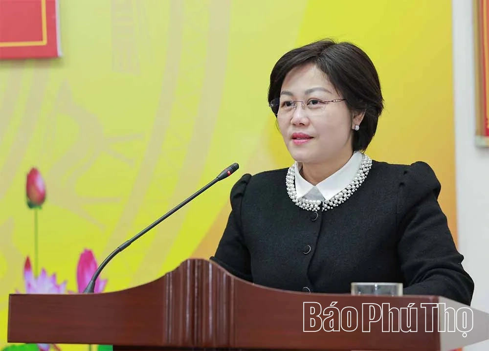 Đồng chí Phó Bí thư Đảng ủy UBND tỉnh Đỗ Thị Ngọc Ánh phát biểu chỉ đạo hội nghị
