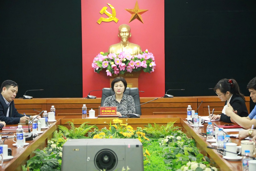 Đồng chí Đỗ Thị Ngọc Ánh - Phó Bí thư Đảng ủy chủ trì Hội nghị tại điểm cầu Đảng uỷ UBND tỉnh